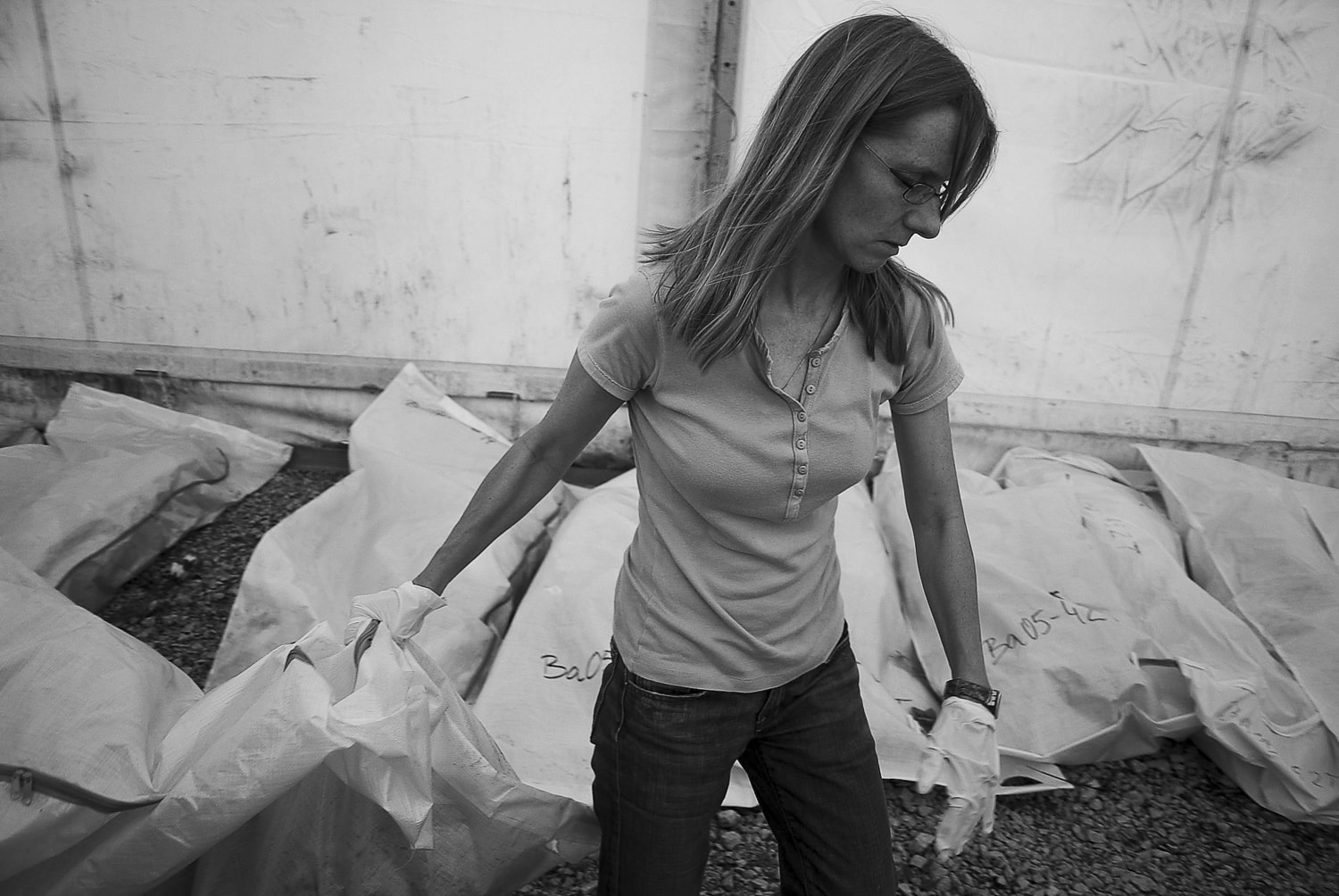 A surreal scene followed when I was alone in the enormous tent with hundreds of plastic bags with unclear markings. It was as though I had invited myself to witness this process, and no one was even trying to stop a photographer during a very sensitive process.