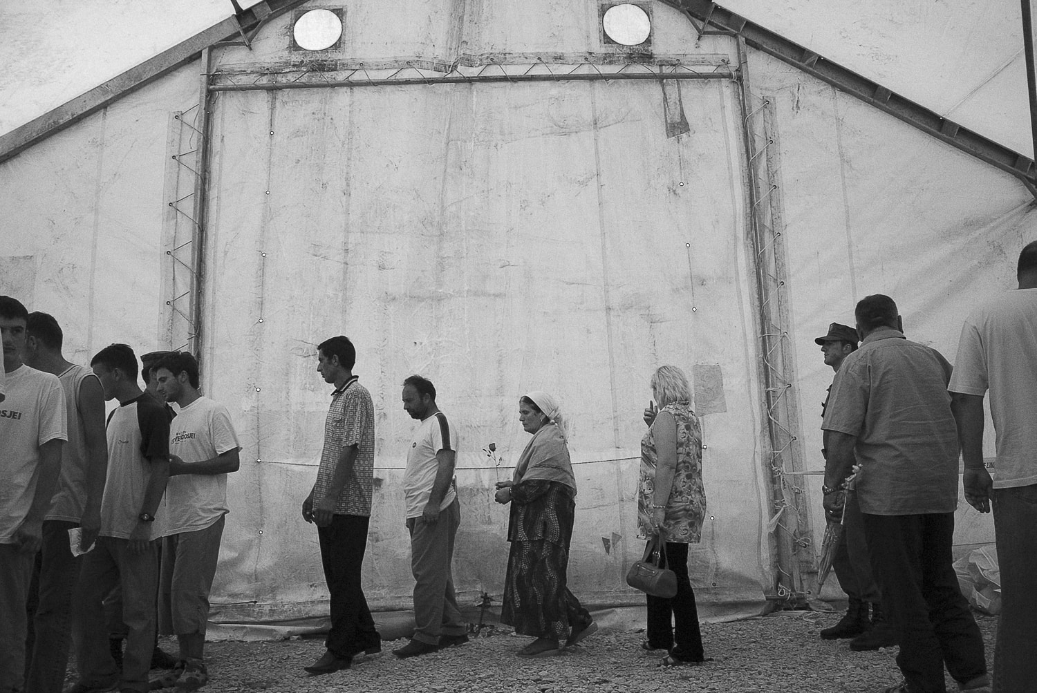Hundreds of family members regularly gathered outside a plastic tent at the Merdare border crossing in north east Kosovo to pay their respects and hoping they would be there when the remains of their loved ones were brought back home. During this period, there were regular transfers of mortal remains found in mass graves in Serbia.