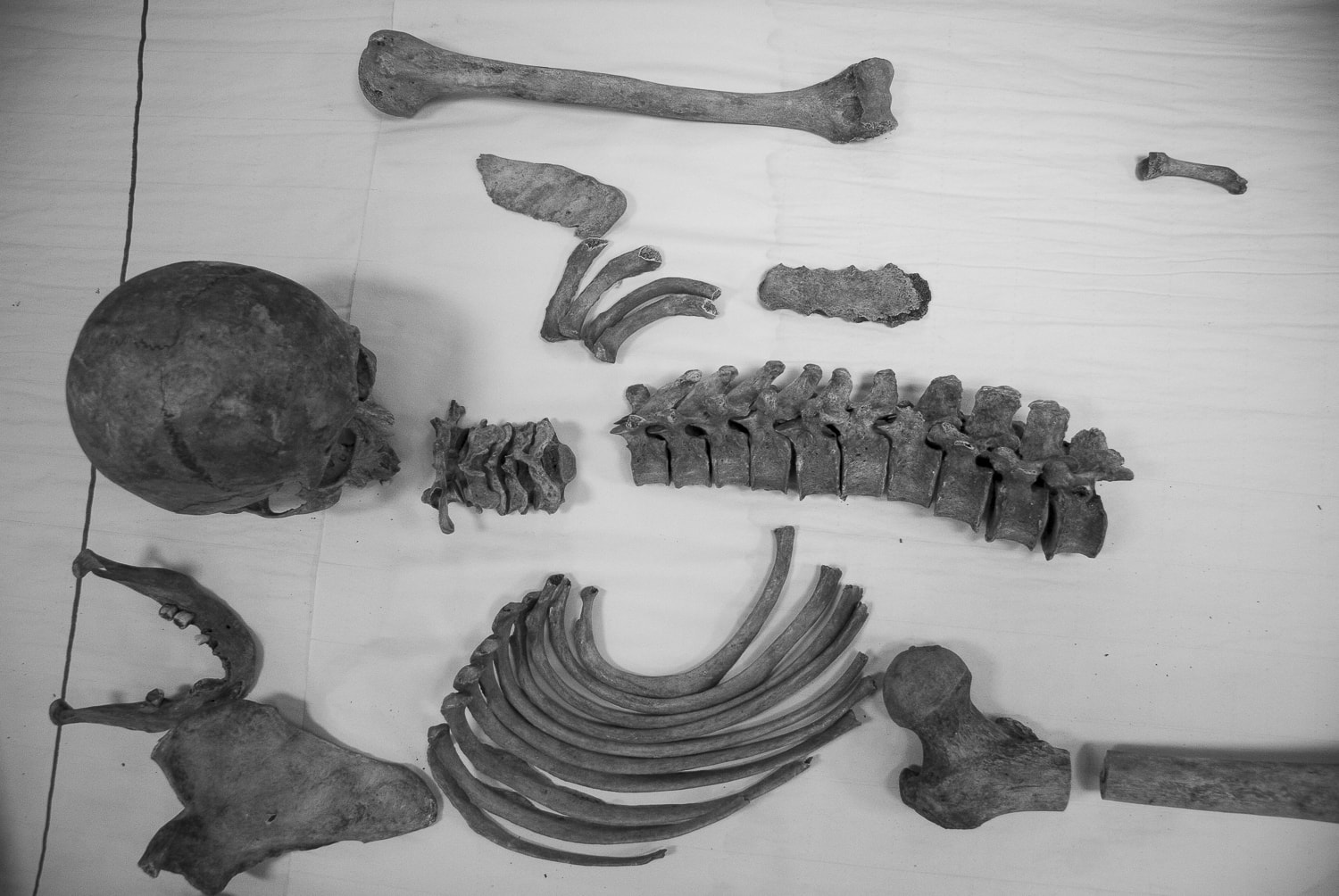 First the remains from one bag were placed together and tested for potential skeletal reconstruction. In many cases, pieces of unknown origins had their DNA extracted to identify whether they were of human or animal origin.