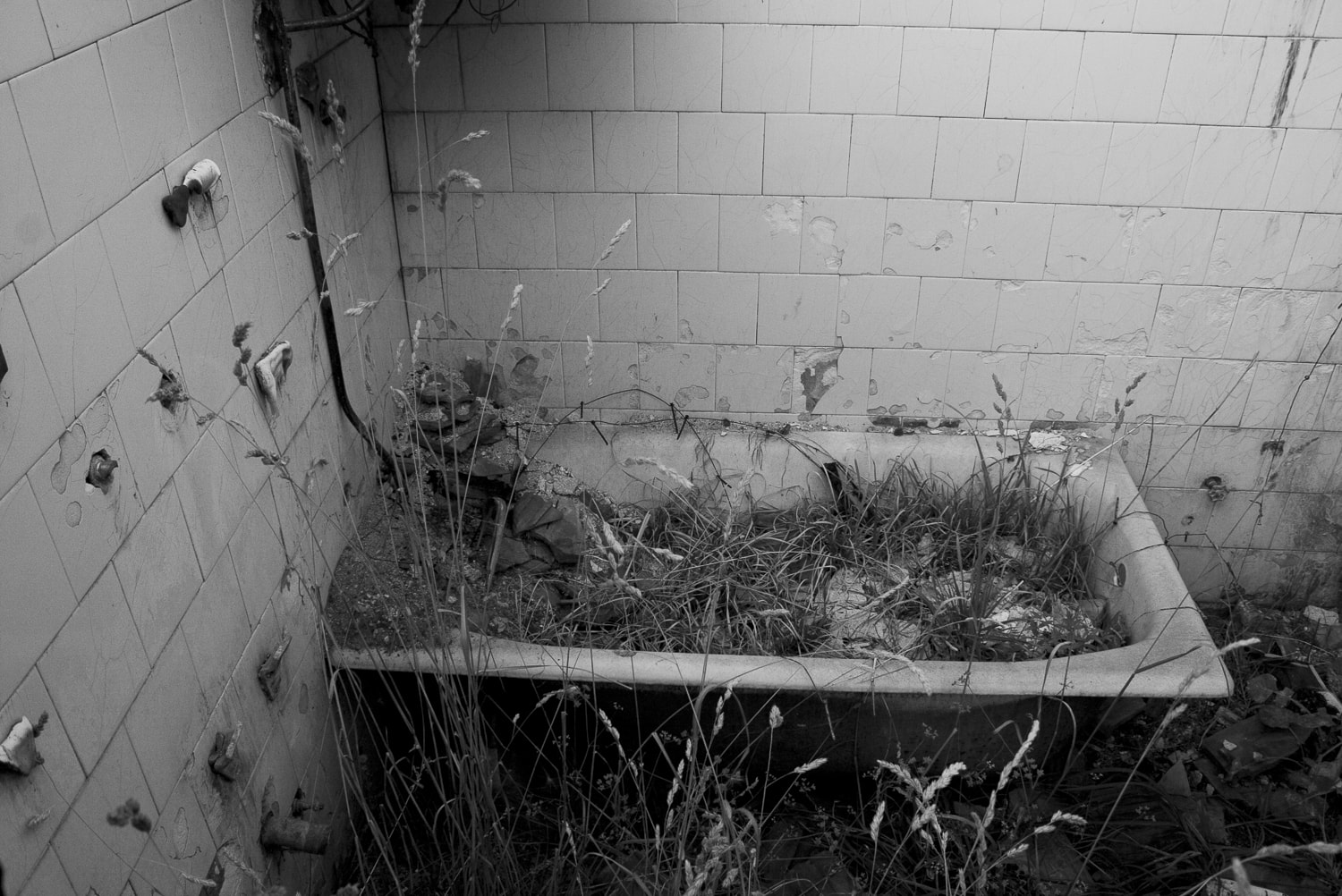 Nearby was the Behluli family house. I could never have imagined that a bathroom filled with vegetation in a burned house would be so meaningful and reflect the time that had passed since its inhabitants had gone.