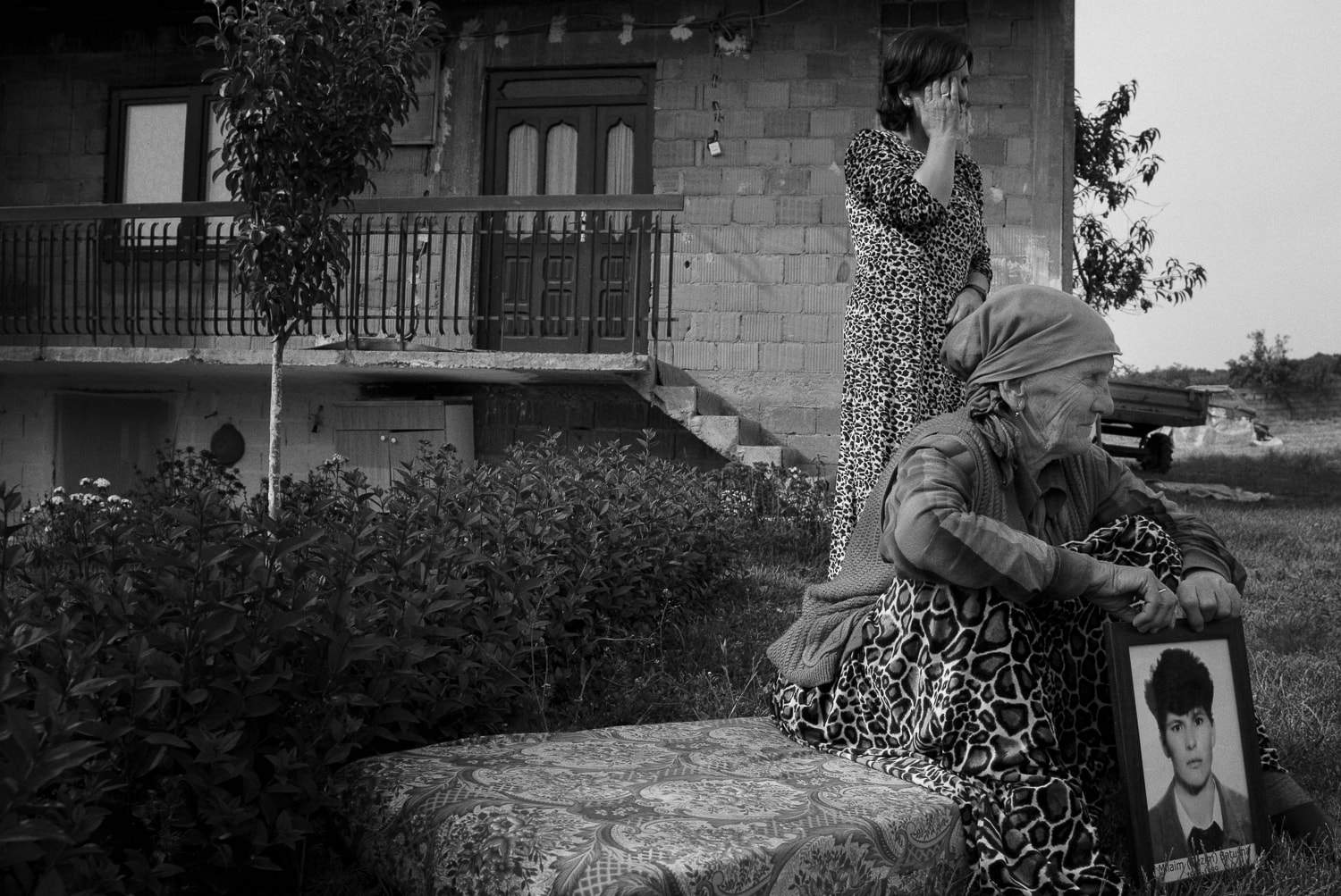 A mother with a portrait of her missing son in her garden in the village of Krusha e Vogël, near Prizren. Photo: Ferdi Limani, 2008.