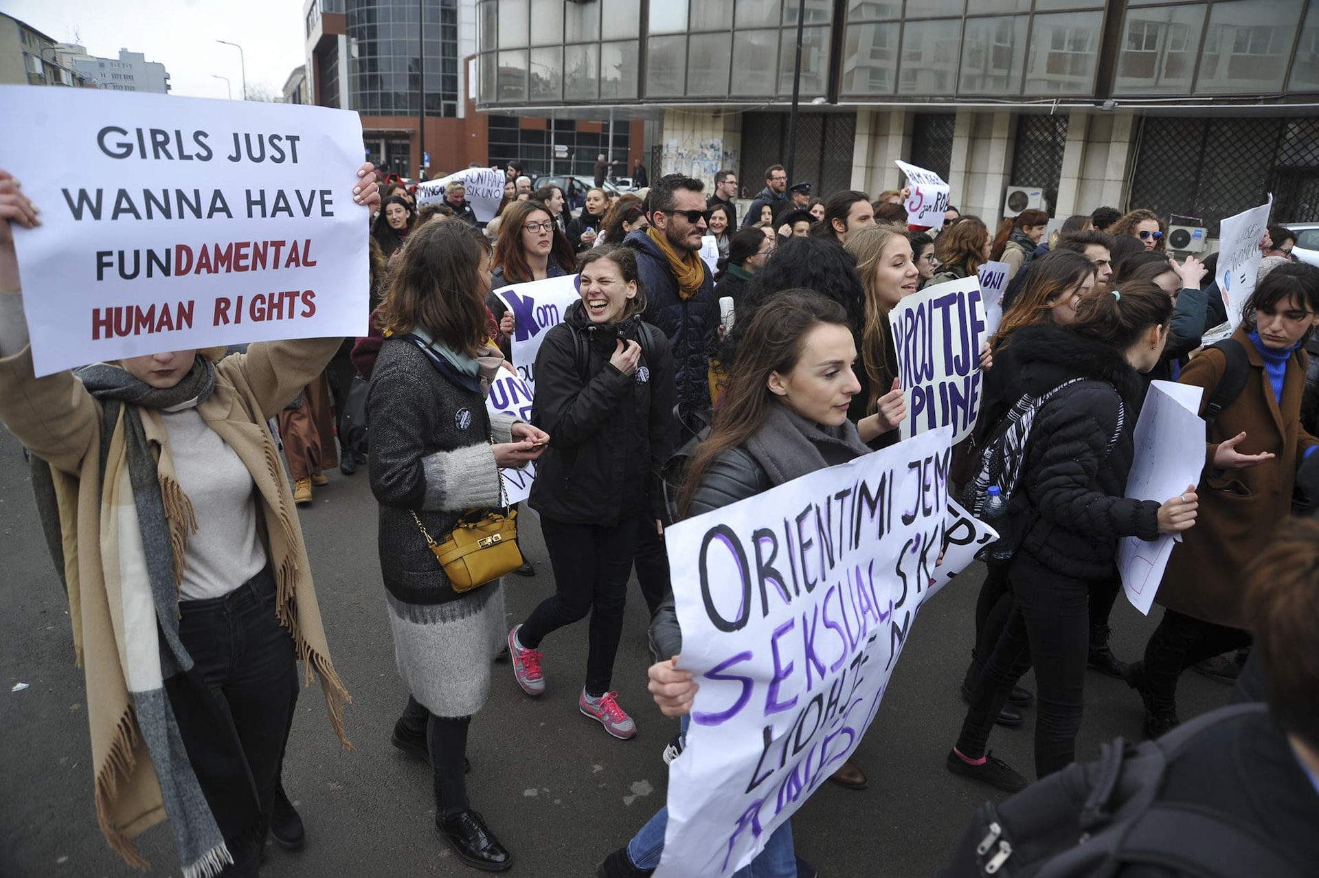 On March 8, 2017, International Women’s Day activities in Kosovo witnessed calls against homophobia and transphobia for the first time. “Stop homophobia,” “My sexual orientation isn’t related to my job,” and “Employment regardless of sexual orientation and gender identity,” were some of the slogans that appeared. Photo: Atdhe Mulla / K2.0.