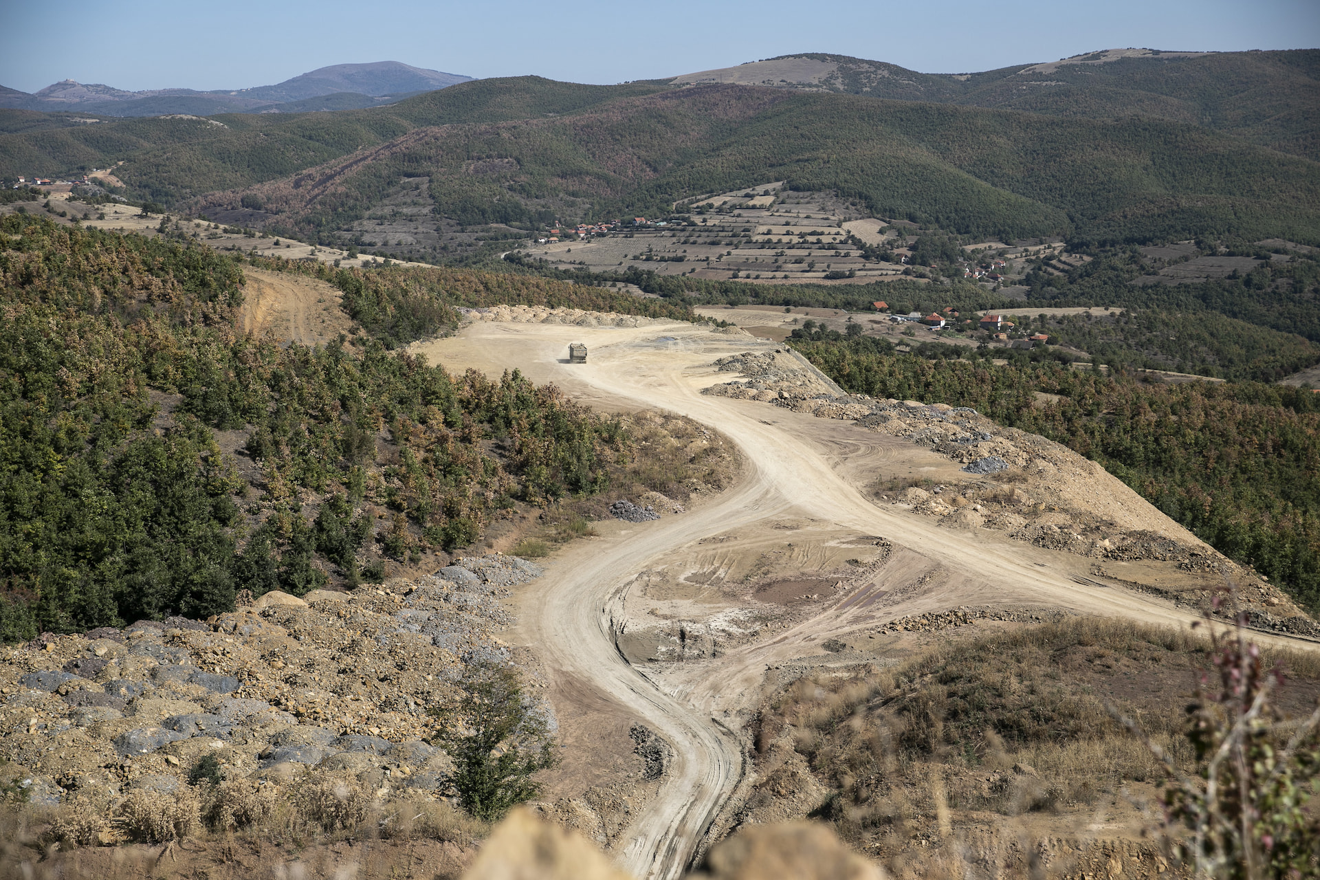 The old road to the village and the highway construction site.