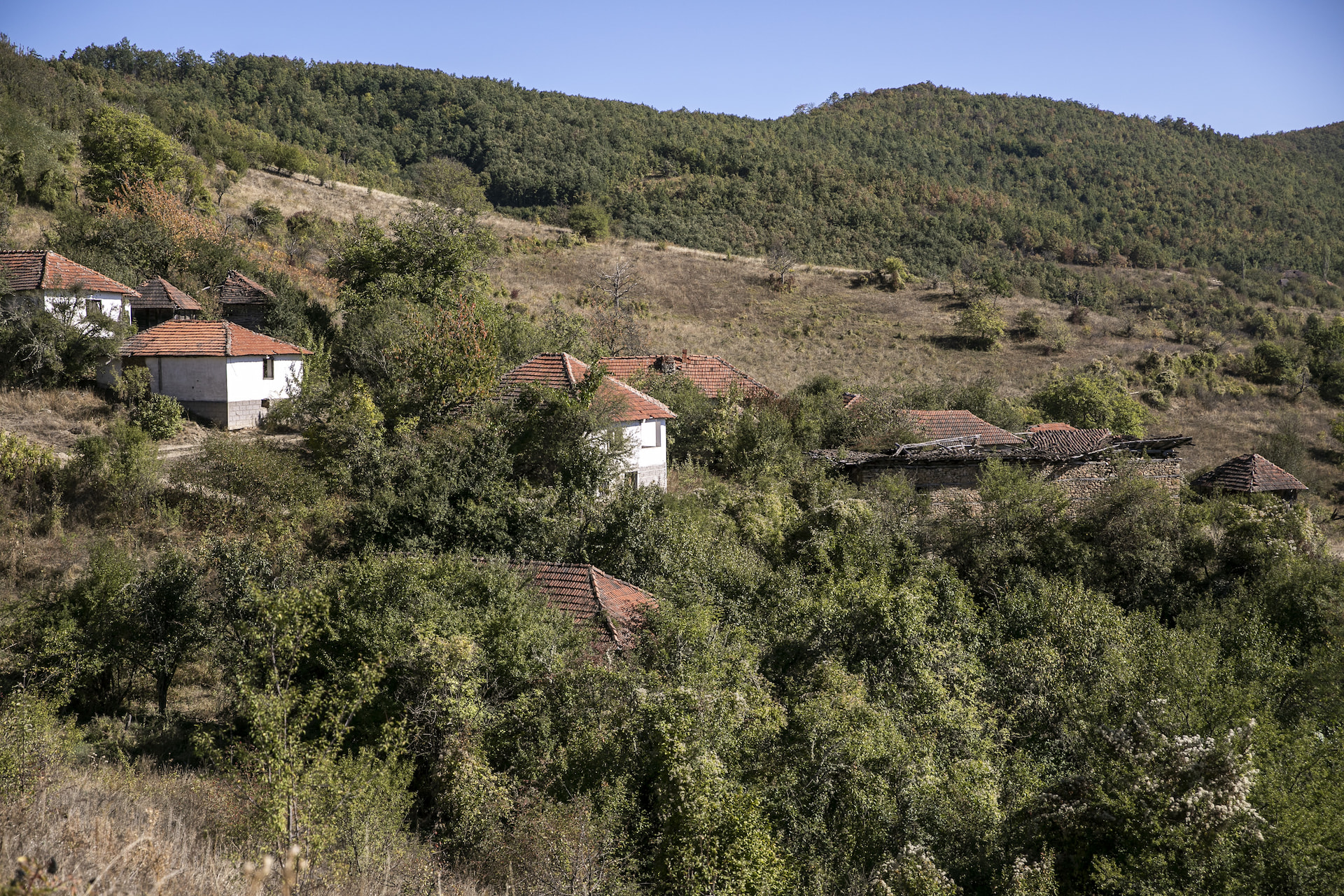 Finally Gragjenik appeared, a village that seemed extremely peaceful from a distance. It was positioned on a hill facing south like a postcard village, only lifeless.