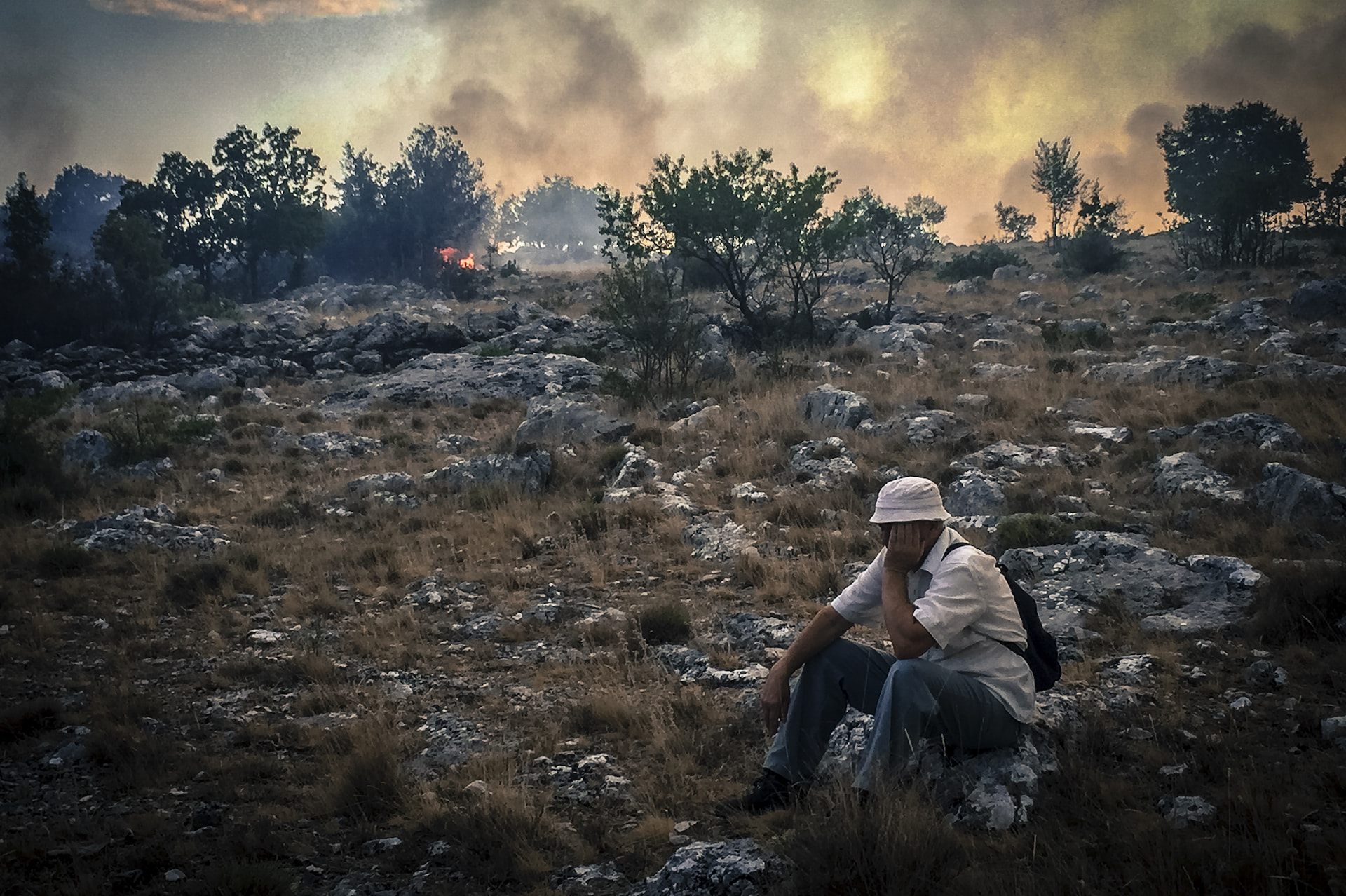 “Zjarri i ka përpirë pyjet me pisha, bimët endemike janë zhdukur dhe kafshët i kanë lënë habitatet e tyre nga frika prej zjarrit”. <br /> <br /> - Fotografi Hrvoje Polan - Velebit, Kroaci.