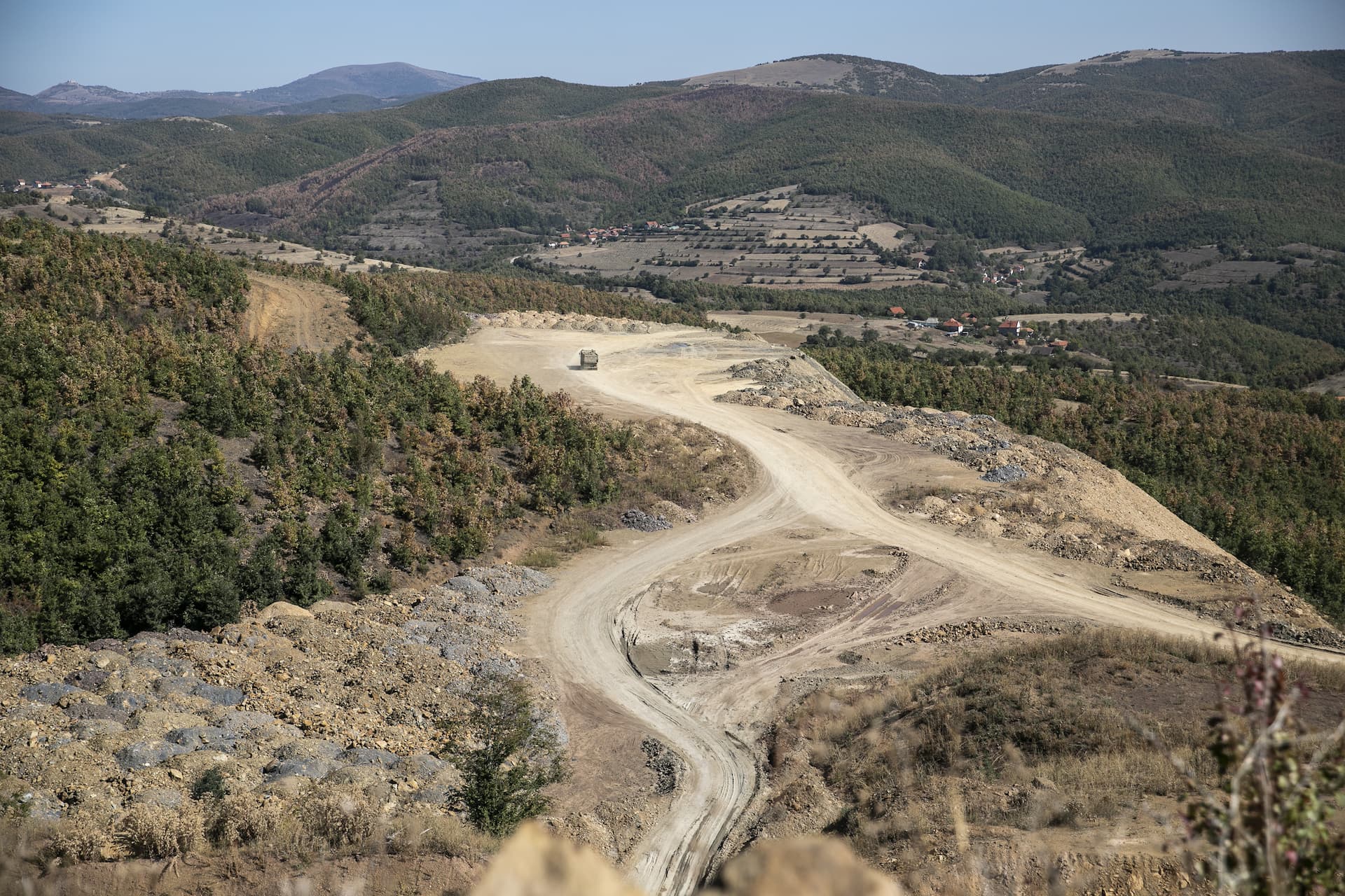 Kantieri i ndërtimit të autostradës në afërsi të fshatit Zhegrovc.